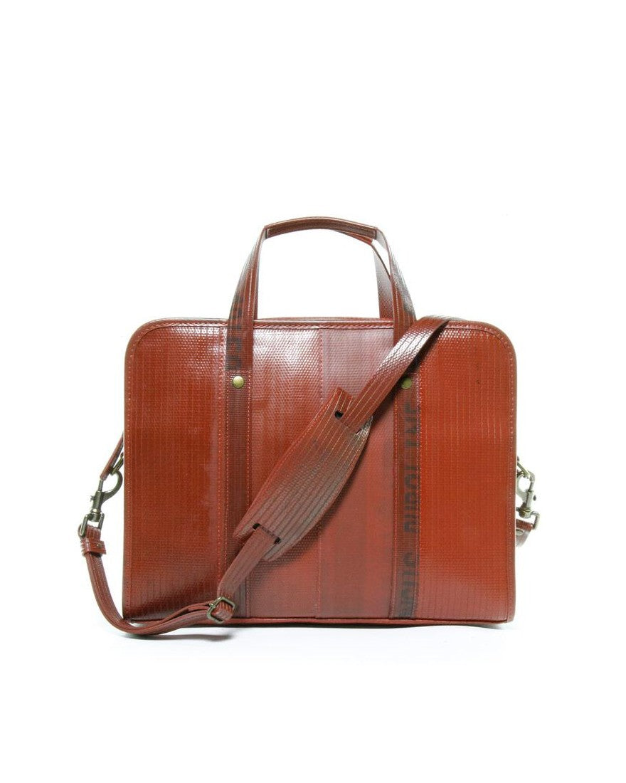 In the humdrum world of nondescript business bags our Compact Briefcase offers you the chance to stand out from the crowd. Previously deployed in active duty for up to 25 years, fighting fires across the UK, the hard-wearing fire-hose is perfectly suited for your daily commute. This classic shape will fit a 14" laptop and has both an internal zip pocket and a padded full-width open pocket for your tablet. The bag can be carried in the hand and also comes with a detachable strap that enables it to be worn comfortably on the shoulder.