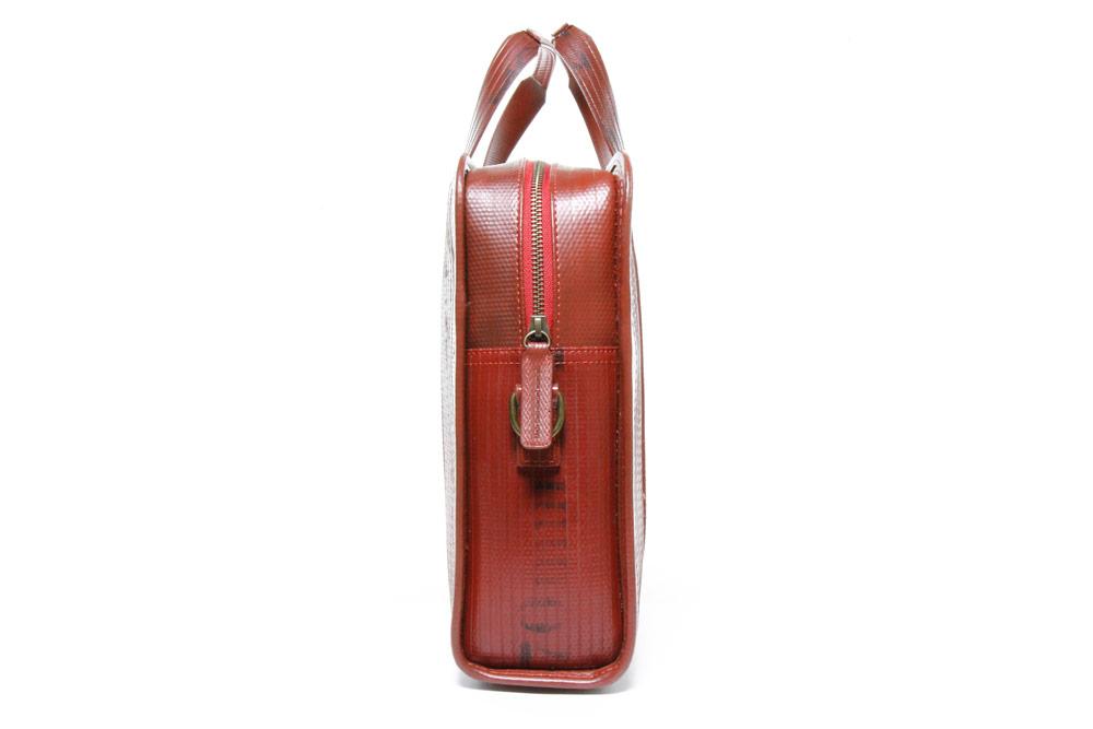 The Elvis & Kresse Compact Briefcase is made from genuine decommissioned fire-hose and the lining is reclaimed military-grade parachute silk.